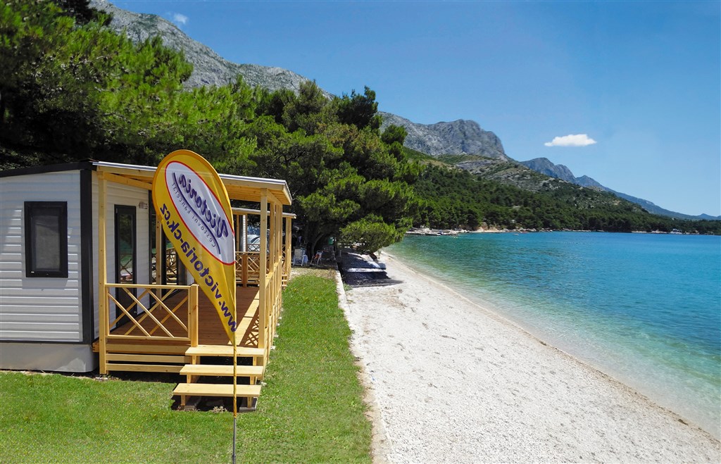 mobilehomy CKVictoria Lux, Lux Grand, X-Line jsou umístěny pod borovicemi, nad oblázkovou pláží, 1–5 m od pláže. Některé mobilehomy Lux jsou umístěny blíž k vesnici Blato, cca 15–70 m od pláže. Chatky a chatky Cool CKVictoria jsou umístěné v několika řadách v polostínu pinií 20–80 m od hlavní oblázkové pláže. Stany CKVictoria jsou postavené v polostínu pinií, od hlavní oblázkové pláže jsou vzdáleny 30–100 m.