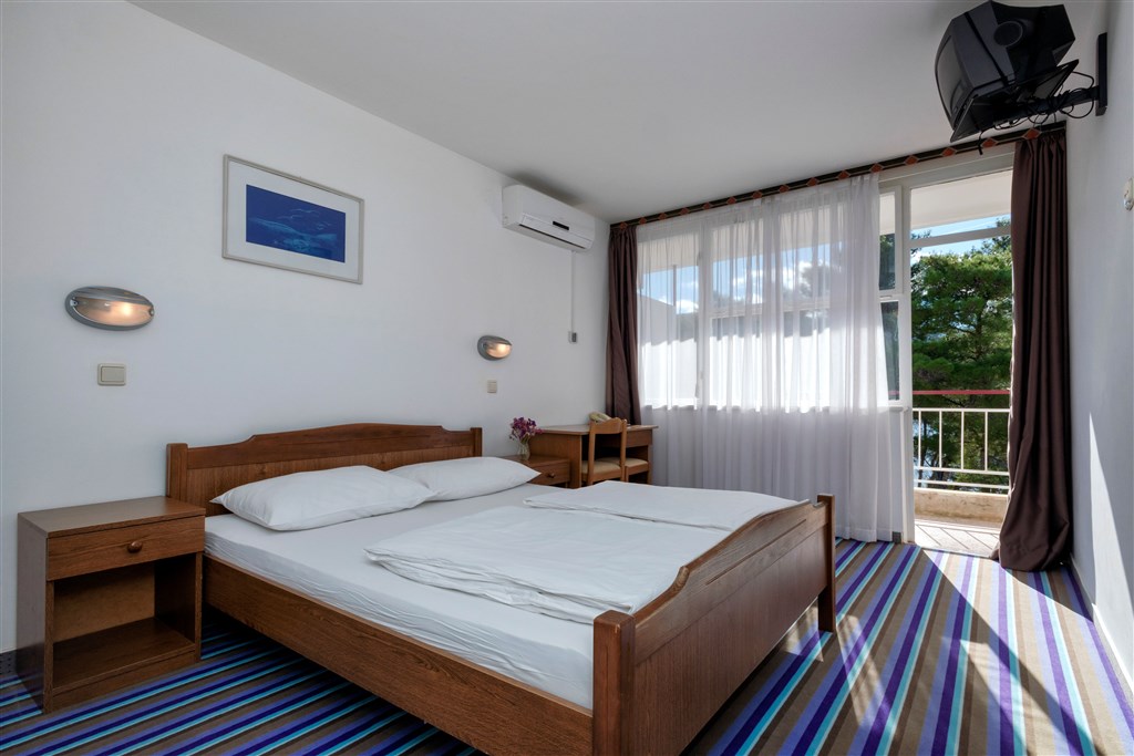 d. Ho. 1/2+(1) balkón, mořská strana - dvoulůžkový částečně zrekonstruovaný, prostorově menší pokoj v depandantu, WC/sprcha, sat-TV, telefon, balkón, orientace na mořskou stranu. Možnost jedné sofa přistýlky pro dítě do 14 let.