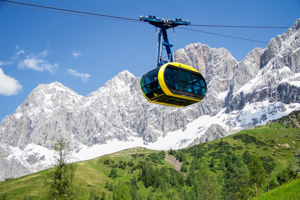 3. den: Možnost výjezdu (zdarma) lanovkou na ledovec Dachstein (2.995 m, horní stanice lanovky ve výšce 2.700 m). Procházka po ledovci s návštěvou Ledového paláce s přístupem po vyhlídkové visuté lávce. Lanovkou zpět. Na kole sjezd do Schladmingu např. přes Ramsau. 21–50 km dle varianty. Odpoledne možnost návštěvy bazénu ve Schladmingu.